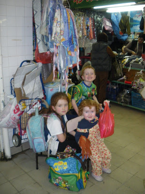 I initially intended asking one of the tailors here at the market to sew my curtains for me, but after the difficulty in communicating, I left with just my curtain fabric. The children were so patient waiting for me, and Jemilla was able to tell the lady pink in Chinese when I couldn't make myself understood.